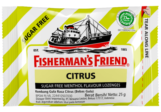 Beberapa hal memang tidak bisa digambarkan dengan kata-kata. Kamu hanya perlu melihat warnanya, menyukainya ... dan mencoba Fisherman’s Friend Citrus. Karena citrus adalah kembar rahasia dari buah lemon; Mereka mirip tapi tidak terlalu asam dan sedikit lebih terasa buah-buahan. Lebih gampangnya kamu cobain aja deh! Jangan ragu juga untuk mencoba Lemon, karena mereka masih satu keluarga.